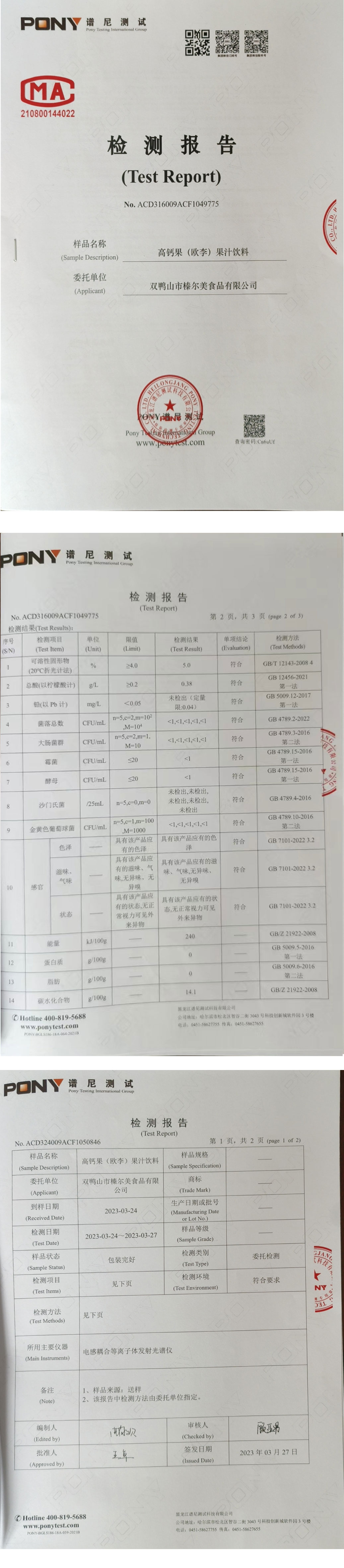 高 鈣 果檢測報告